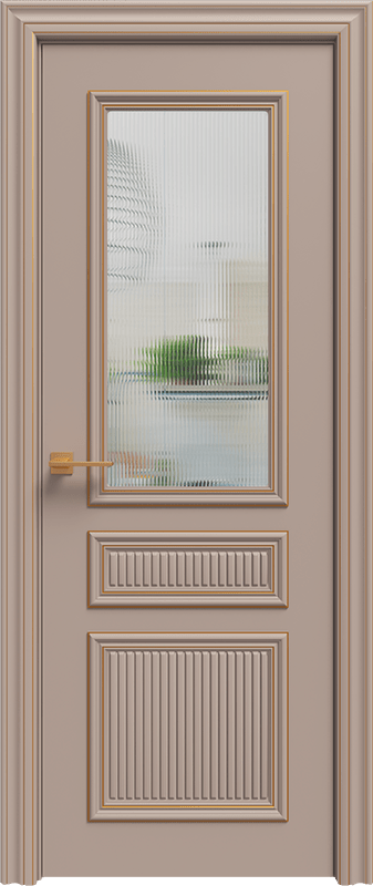Остекленные модели выглядят стильно, актуально и невесомо, благодаря эффектному стеклу Moru, которое пропускает достаточно света в помещение. Оно имеет ребристую поверхность, которая акцентирует на себя внимание и синхронизируется с фрезеровкой на полотне. Так же есть возможность выбора более традиционного остекления — это сатинат светлый с гравировкой.