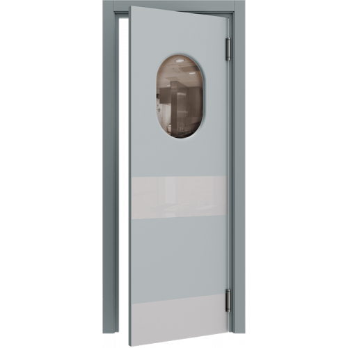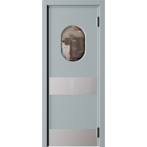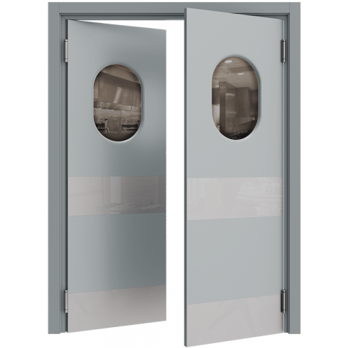 Барные двери актуальны в помещениях с повышенной проходимостью для более удобного доступа персонала к техническим комнатам, например с бара в зону кухни. Часто бывает необходимым, для обзора соседнего помещения, чтобы дверь была остекленная и стилистически оформлена. Стекло толщиной 4 мм круглой, овальной или квадратной формы, на выбор: сатинат светлый, бронзовый, графит или прозрачное стекло. Устанавливается на двери толщиной 40 мм в покрытии Эмаль (любой цвет по каталогу RAL Classic K7) и толщиной 35 мм в ПВХ-покрытиях.